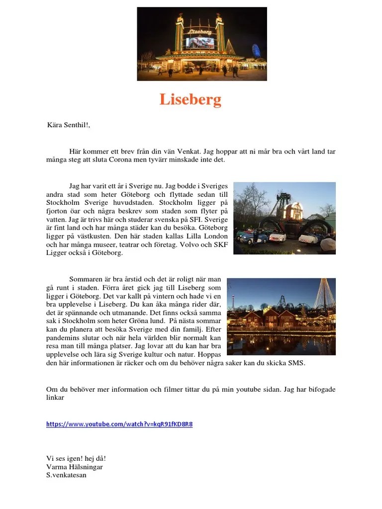 Titta på videon där en lärare förklarar hur man kan skriva ett informellt brev till t.ex. Eleverna ska skriva ett brev till en vän och berätta om hur de trivs på sfi. Jag ska skriva lite till dig om sverige, hur vädret är. Min skola heter hermods och den ligger i kista. Informella brev är brev du skriver till vänner eller familj.